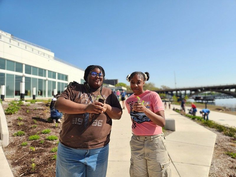 "These are two of our Restoration Workday volunteers who helped us plant hundreds of native flowers and grasses in the Rockford Public Library Pollinator Garden. We all shared a sense of exuberance that day! Strangers coming together to restore land that is right in the heart of Rockford, next to the iconic Rock River, on display for thousands of people to learn from an enjoy? You can't get much better than that!" - submitted by Andrea Wallace Noble, Education Programs Manager