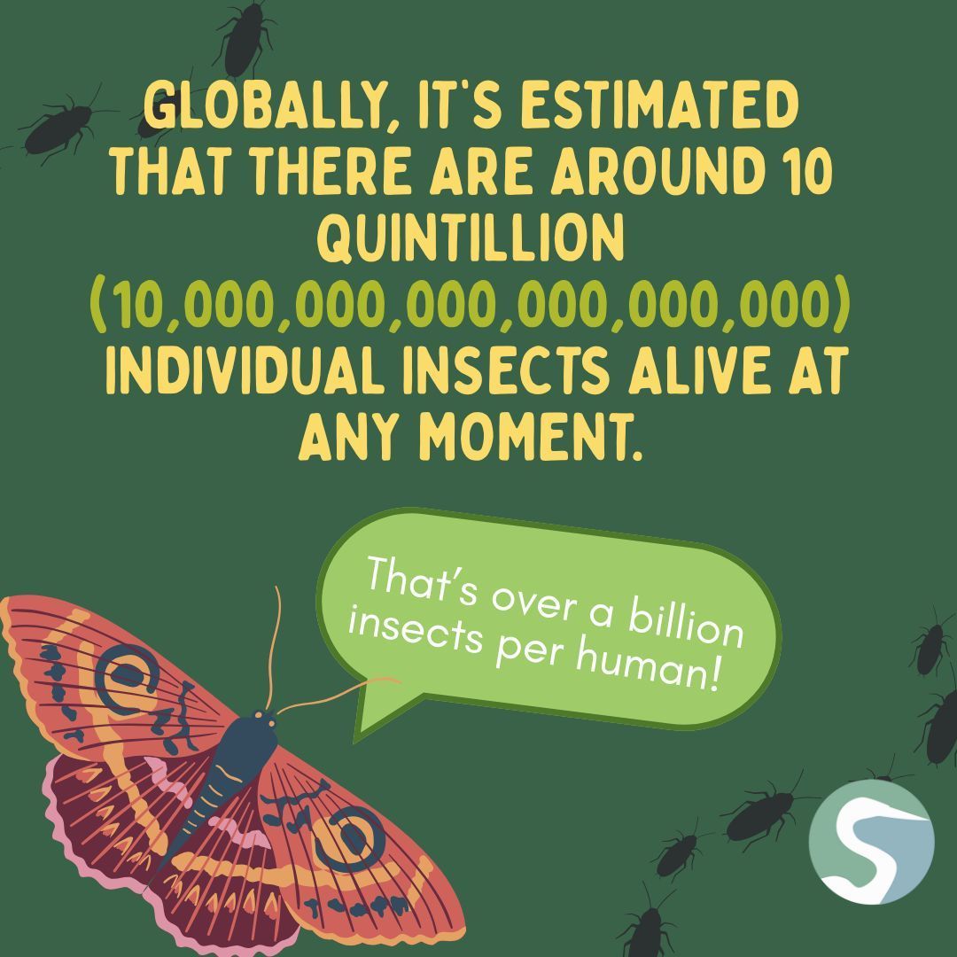 10 quintillion (10,000,000,000,000,000,000) individual insects alive at any moment. That’s over a billion insects per human! Insects are not just numerous, they're ancient, diverse, and adaptable. They thrive in deserts, forests, lakes, cities, and have for millions of years.