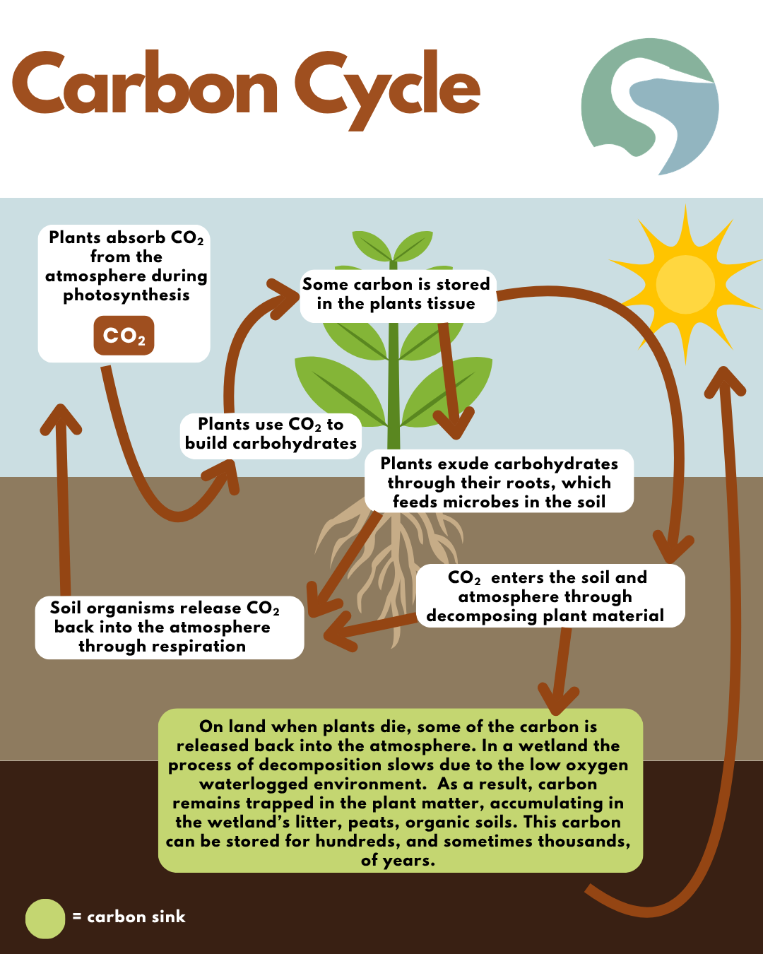One way to help rebalance this system is through carbon sequestration, the process of capturing and storing carbon so it stays out of the atmosphere. Many natural ecosystems do this automatically. Forests, wetlands, grasslands, and especially soils can act as carbon sinks, meaning they absorb more carbon than they release. While oceans are the largest carbon sink globally, soils are incredibly important, and often overlooked.