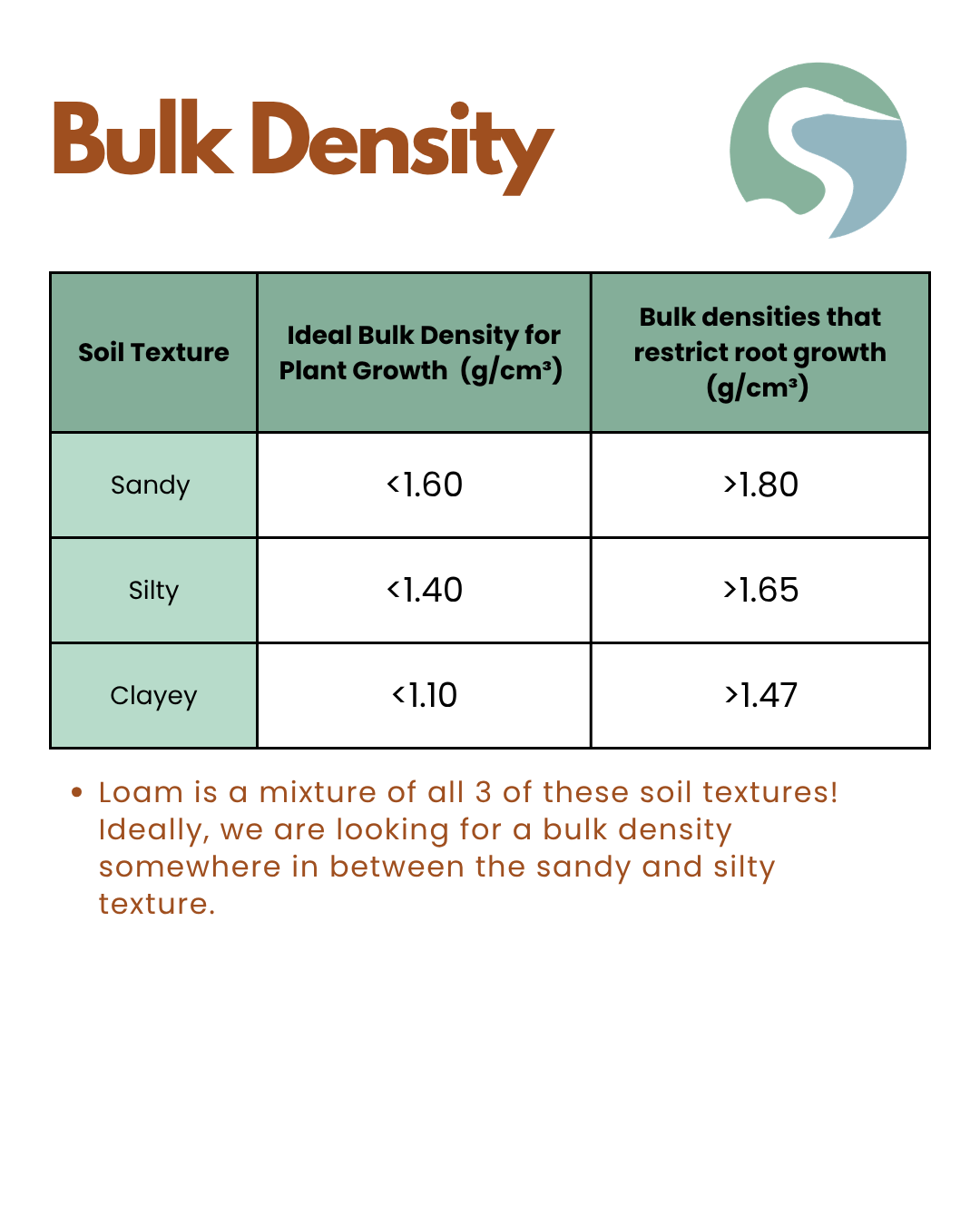 Low bulk density means that the soil is loose and porous, and has plenty of space for air, water, and roots to move through it. These soils typically contain more organic matter, and can support more plant growth. In contrast, high bulk density indicates compacted soil with fewer spaces between soil particulates, making it harder to absorb water and for roots to grow through it.