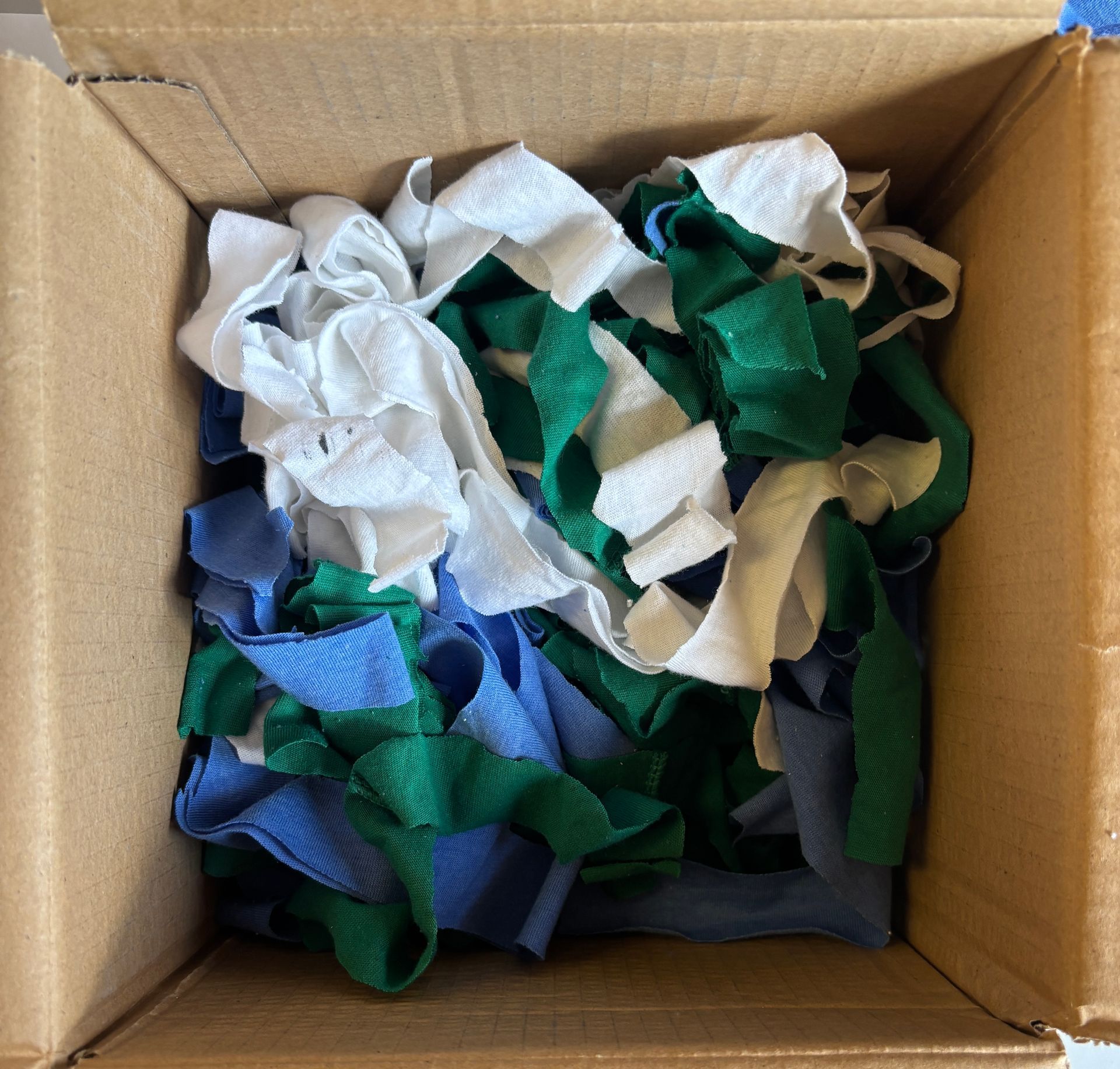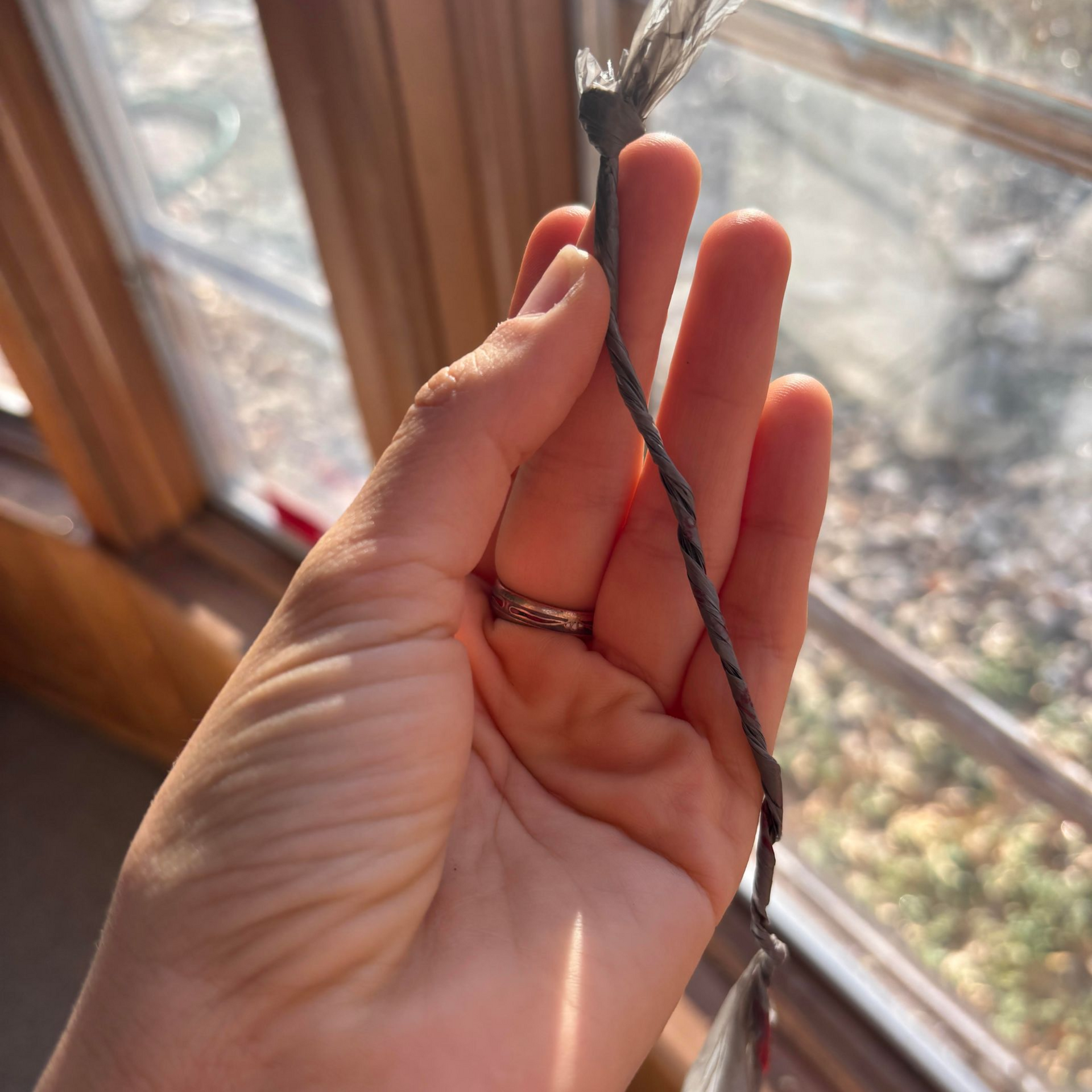 Plastic bags are something easily found lying around an apartment or house, buried at the bottom of a bag, or blowing around outside. Plastic bags (like the kind from most grocery stores) can be transformed from difficult to recycle waste to a variety of textile related items. For the holiday season, they can be turned into a twine-like cord to be used in garlands or other projects. Below is a project turning plastic bags into