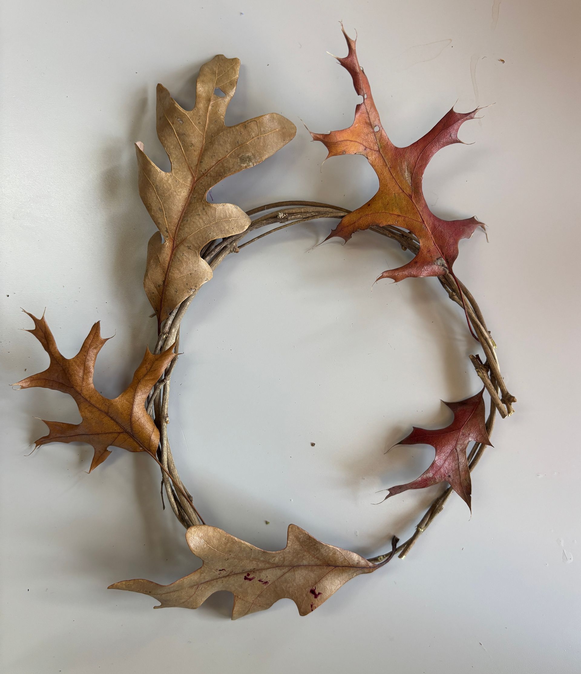 The same sort of glue mixture could be helpful here if given enough time to set, and other methods like tying materials to the wreath could be used to put it all together.
