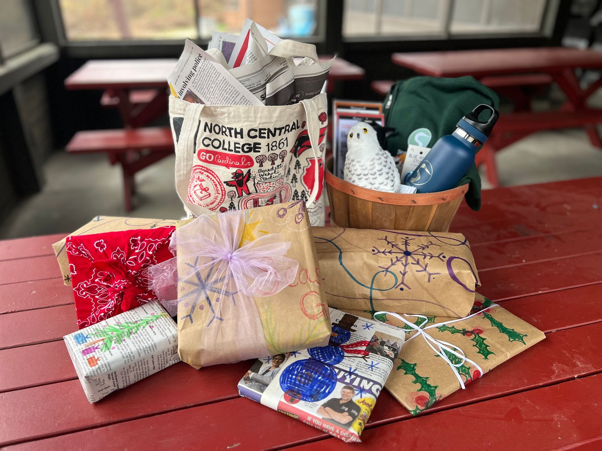 - For a chic presentation, wrap your gifts in scrap fabric, scarves, bandanas, tea towels, reusable tote bags, or use a basket (which you can find in abundance second-hand)