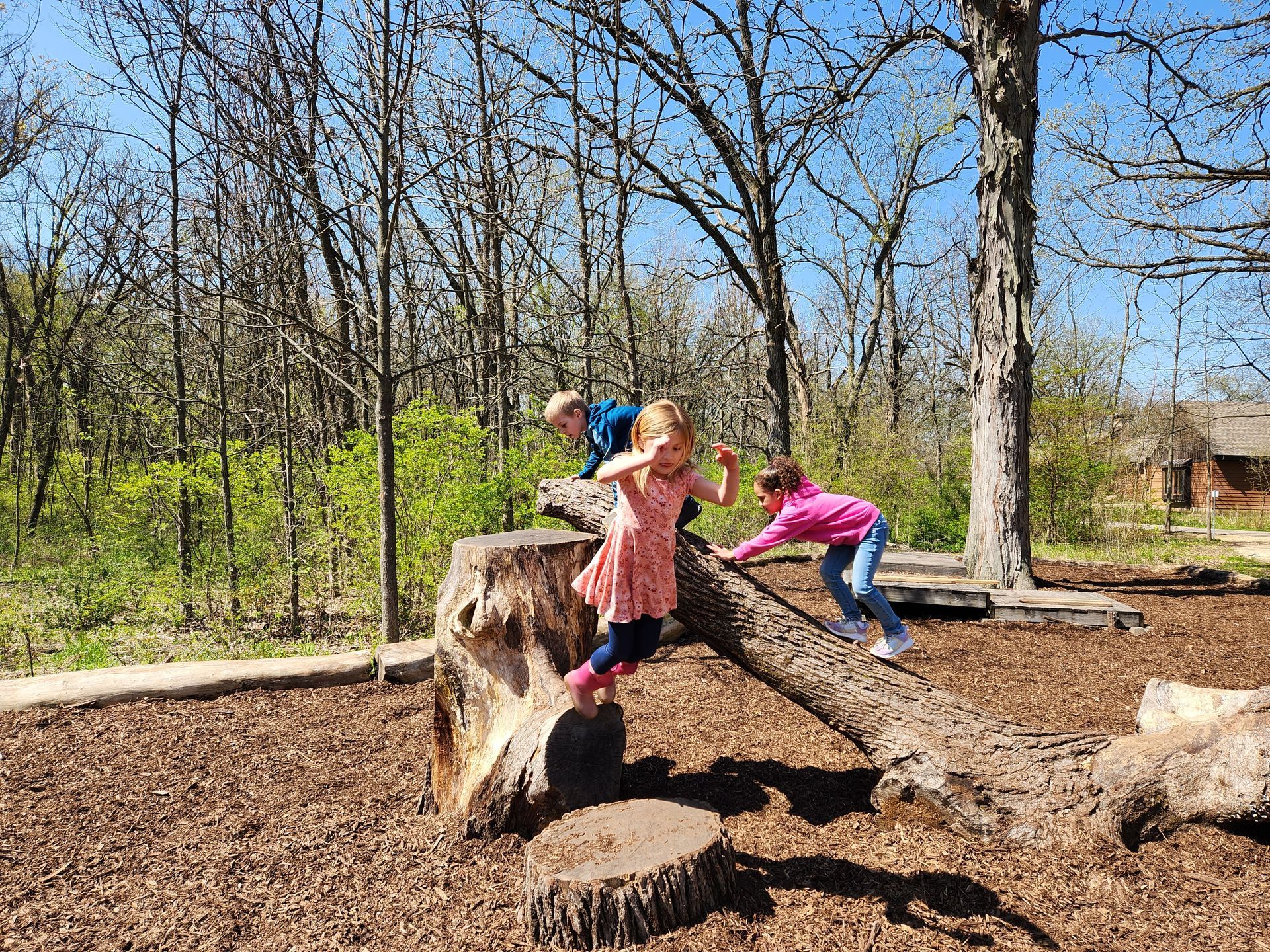 The Grove Nature Playscape is located just inside Severson Dells Forest Preserve. It’s open every day from sunrise to sunset and admission is free. Climbing features are intended for ages 5 - 12, but fun for all ages, from 0 to 99 is guaranteed.