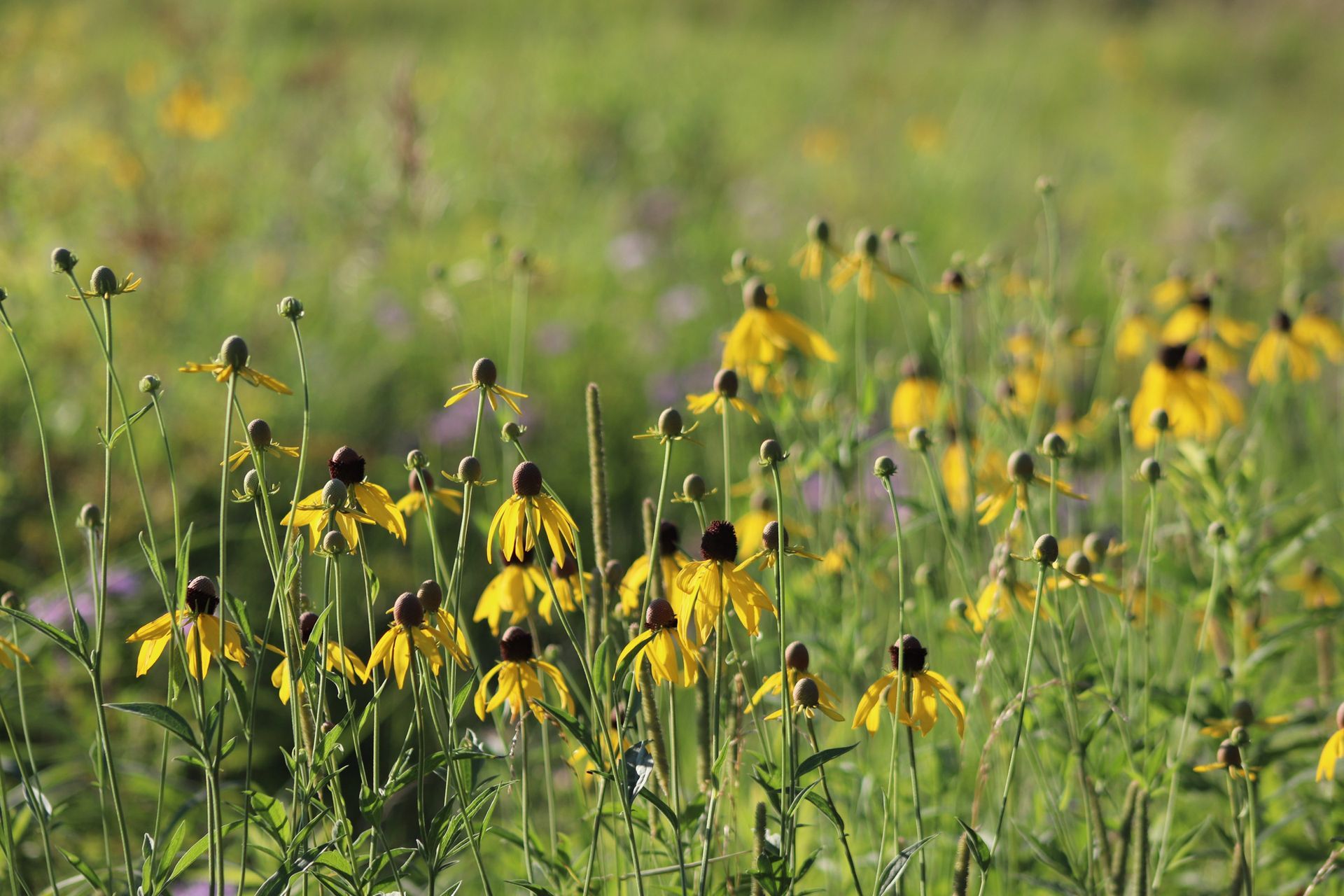 A wet prairie is a wetland dominated by grass species, although species diversity is lower than that of other prairie communities. The soil is nearly always saturated and surface water is present in spring and winter. It is usually neutral in pH and is high in loam or silt content and organic content. Our wet prairies can be found in the creek’s floodplain and have small, seasonal streams interspersed throughout. Seasonal flooding and soil saturation prevents encroachment of tree and shrub species in this habitat. Like other prairie habitats, fire is essential for maintaining the health of this community.